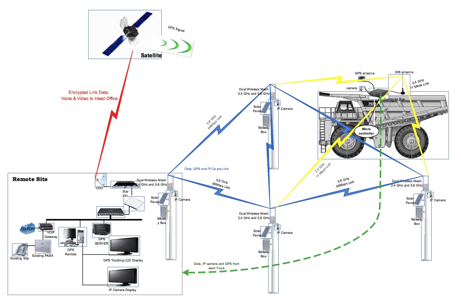 Tantangan tersebut makin mendesak munculnya berbagai solusi karena semakin banyak data yang mengalir dari perangkat yang terhubung pelaporan ke sistem operasional secara real time. Solusi IT untuk Pertambangan yang dikembangkan oleh NETARA ini tidak hanya mendukung kinerja sistem pendukung di kantor pusat dan kantor cabang saja. Solusi transaksi data dan informasi dengan operasional truk dan kapal angkut pun terbentuk berdasarkan masukan dan inovasi bersama dengan pelanggan dan mitra. Solusi IT ini ditunjukkan dengan contoh topologi berikut ini: